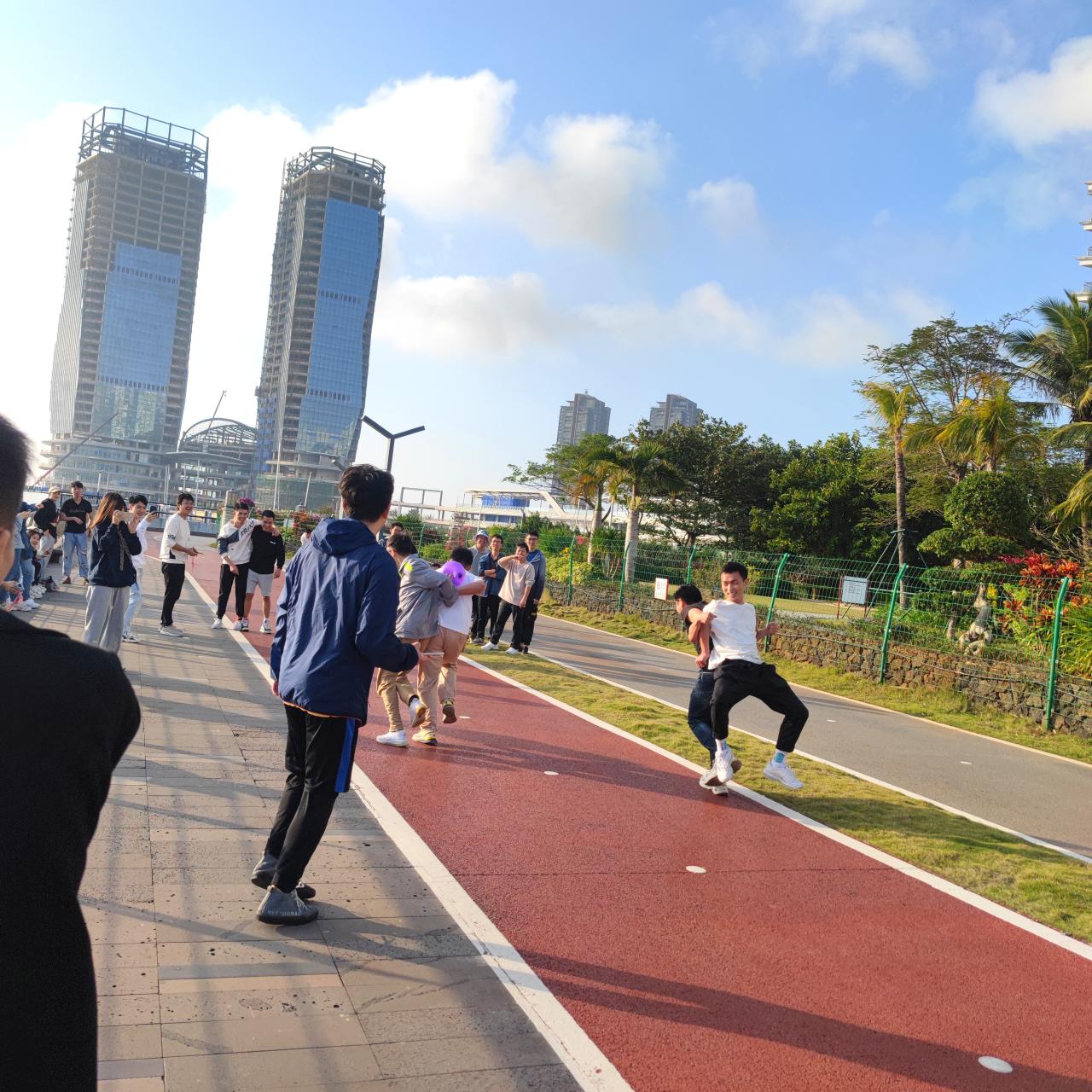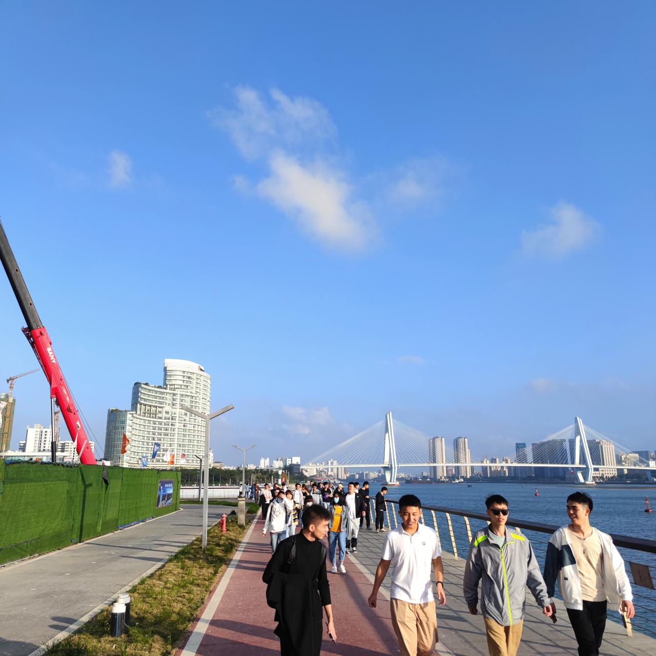 下午16时,师生们准时抵达新南门,合影留念后活动正式开始。此次活动以徒步为主,趣味游戏为辅,路线沿海南大学新南门→世纪大桥→泄湖木栈道设置,在每个休息点还安排有“接力比赛” 和“你比我猜”等互动小游戏,以各队积分发放活动奖励。伴随着优美的海景,队伍浩浩荡荡地出发了。大家一路欢歌笑语,在风光旖旎的海口湾盛景中相伴而行,尽情挥洒欢乐与激情,沿途拍照记录魅力风景与美好时刻。在向终点进发的路上,师生们时而被游戏关卡绊住脚步,面露愁容,苦苦思索“获胜秘籍”,时而突破障碍,欢呼雀跃,冲向胜利的终点。无论结果如何,在整个活动中,大家始终热情高涨,积极参与。终点上,根据积分宣布了比赛结果,并进行颁奖仪式。至此,徒步活动圆满结束!