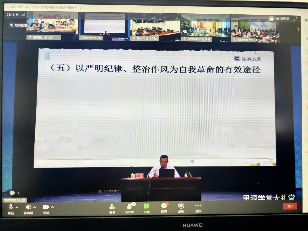 4月26日下午,海南大学william威廉亚洲官方在分会场参加海南大学党风廉政教育专题报告会暨十九届六中全会精神专题辅导报告会。