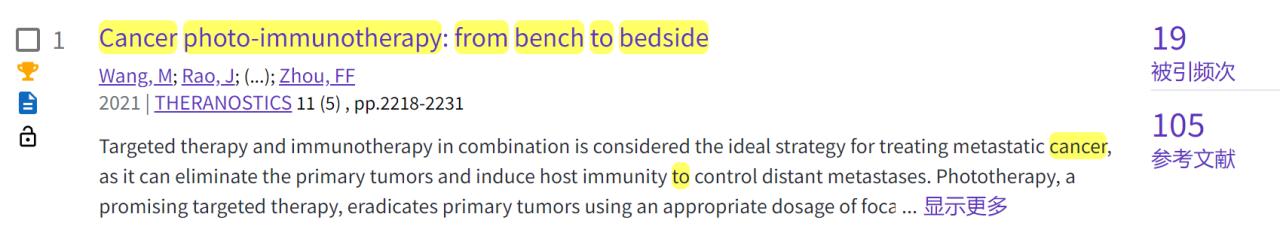根据美国基本科学指标(Essential Science Indicator, ESI)2022年5月公布的数据显示,以海南大学为第一单位,周非凡教授为通讯作者, 2021年1月发表的学术论文“Cancer photo-immunotherapy: from bench to bedside”成功入选全球前1% ESI高被引论文。该论文在国际顶级(Top)期刊《Theranostics》(IF=11.556,中科院分区医学1区)发表。