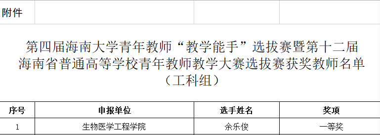 近日,海南大学公布了第四届海南大学青年教师“教学能手”选拔赛暨第十二届海南省普通高等学校青年教师大赛选拔赛的选拔结果,我院余乐俊老师荣获工科组一等奖,并将代表海南大学参加第十二届海南省普通高等学校青年教师教学大赛。william威廉亚洲官方在此次比赛中获得优秀组织奖。