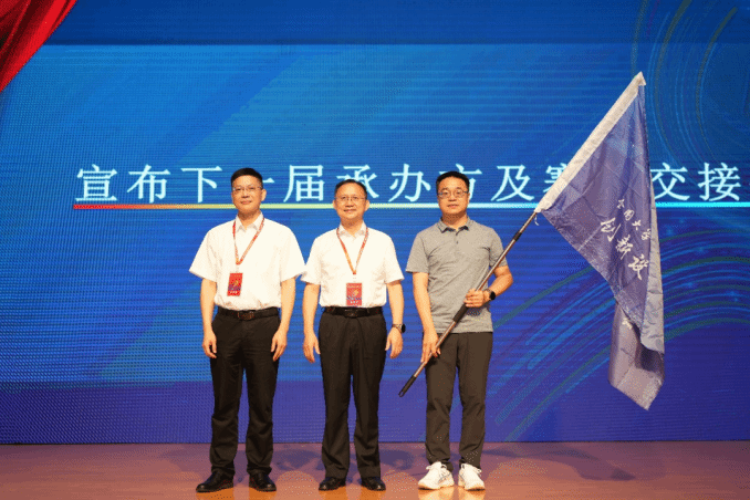 最后,会议举行了会旗交接仪式。第九届全国大学生生物医学工程创新设计竞赛将由海南大学承办。我院将以此次国家级学科创新竞赛举办契机,坚持把科学育人摆在人才培养重要位置,提前启动、整体推进,联系海南自贸港、海南健康岛建设需求,紧密围绕生物医学产业需求,以大赛为抓手,推动“大众创业、万众创新”向纵深发展,为生物医学工程学科和产业的建设发展提供源源不断的人才支撑和智力支持,有效解决医疗器械和装备等领域科技发展滞后问题,助力健康中国建设。