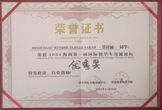 莫诗涵表示:“此次交流论坛不仅丰富了我的学术旅程,还提升了我的写作与演讲能力。感谢导师与学校给予我的支持。同时,论坛为我提供了与其他高校国际学生交流的宝贵机会,这种多元文化的碰撞让我对海南自贸港的发展有了更加深刻的认识。”