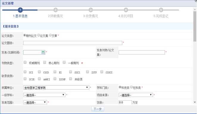我院入职教师基本信息已录入校科研系统,请老师们抽时间把已有的项目、科研成果等录入该系统。所有成果在录入系统时,均需列出海南大学校内参与者的中文姓名。如参与者过多,可只列主要参与者。当参与者中有本科生、硕士生、博士生,须各列出至少一名本科生、硕士生、博士生的中文姓名,并备注其年级信息。