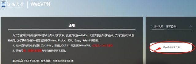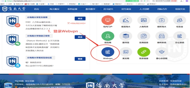 登录海南大学主页, 用Webvpn登录,具体操作如下: