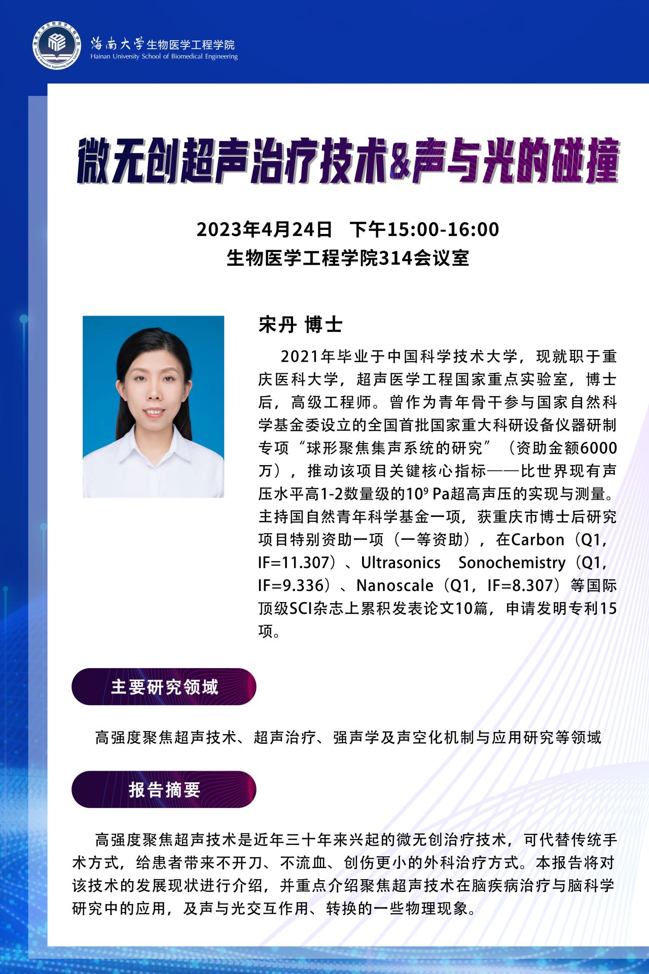 william威廉亚洲官方学者论坛第三期——宋丹“微创超声治疗技术&声与光的碰撞”