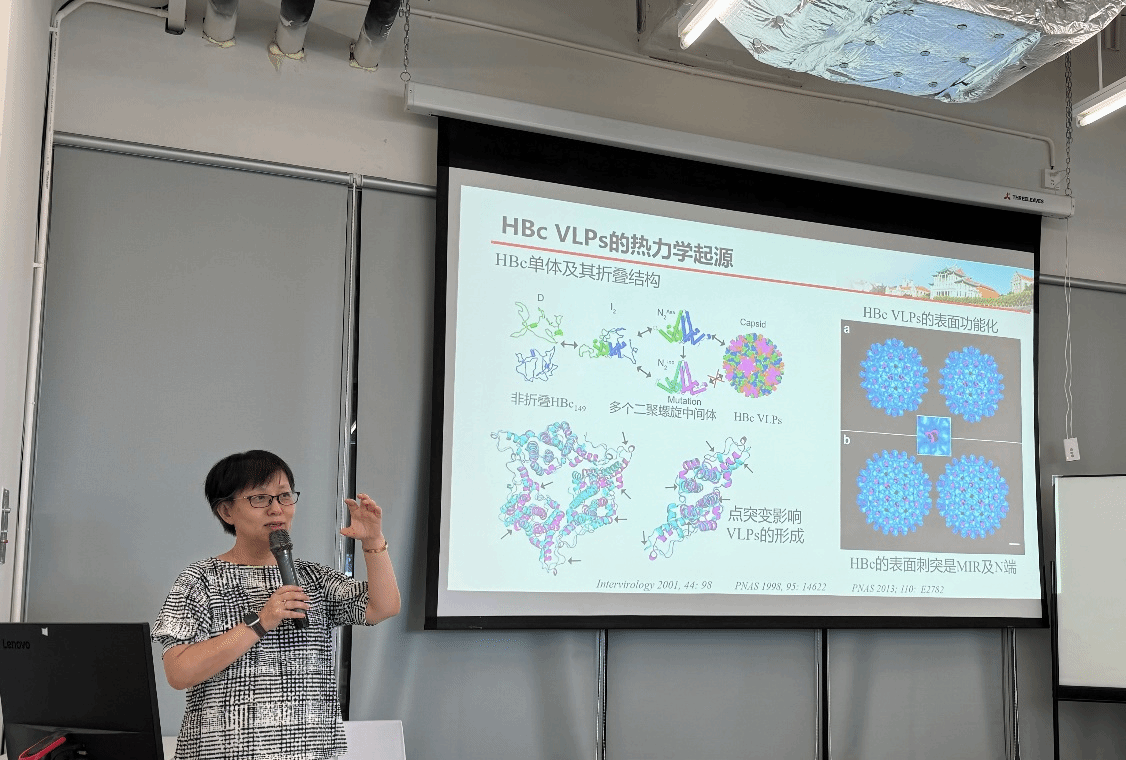 由病毒衣壳蛋白所构建的纳米笼结构——病毒样颗粒(VLPs),具有较大的内部空腔,可高效包载药物,是极具潜力的纳米递送载体。更重要的是,这类蛋白纳米笼材料保持了病毒的衣壳结构及免疫原性优势。在学术讲座中,任磊教授从病毒、病毒样颗粒的制备表达和临床应用等基础背景知识开始,结合其所带领的研究团队十多年的研究工作,系统介绍了基于乙肝病毒核心蛋白(HBc蛋白)的纳米笼材料应用于肿瘤诊断和治疗,特别是在肿瘤免疫治疗方面的独特表现等一系列的研究成果,为肿瘤的临床治疗提供了更多的可能性。报告深入浅出、富有热情和启发性,现场师生积极提问互动交流,取得良好效果。