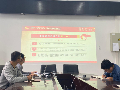 会上,孙伟康同志首先简要介绍了国家宪法日的背景、由来等基础知识,讲解了学习宪法的基本原则和意义。带领大家学习了党的十九大中的宪法内容和习近平总书记的讲话内容,指出弘扬宪法精神,树立宪法权威,全面贯彻实施宪法,是推进国家治理体系和治理能力现代化的必然要求。最后,全体党员交流了关于宪法日学习的感想,将学习《宪法》知识与学习贯彻习近平新时代中国特色社会主义思想以及贯彻党的十九届五中全会精神紧密结合,能够更加全面准确地领会宪法与国家治理体系之间的关系。